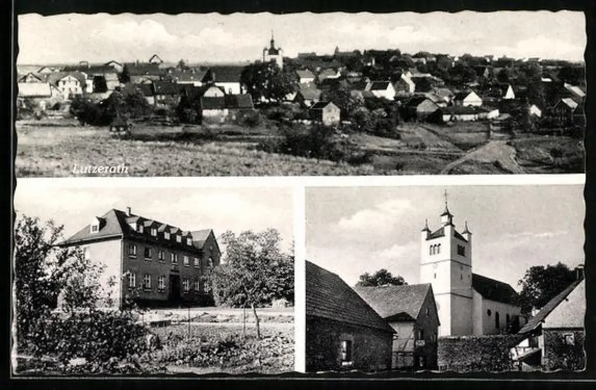 AK Lutzerath, Ortsansicht, Schule, Kirche