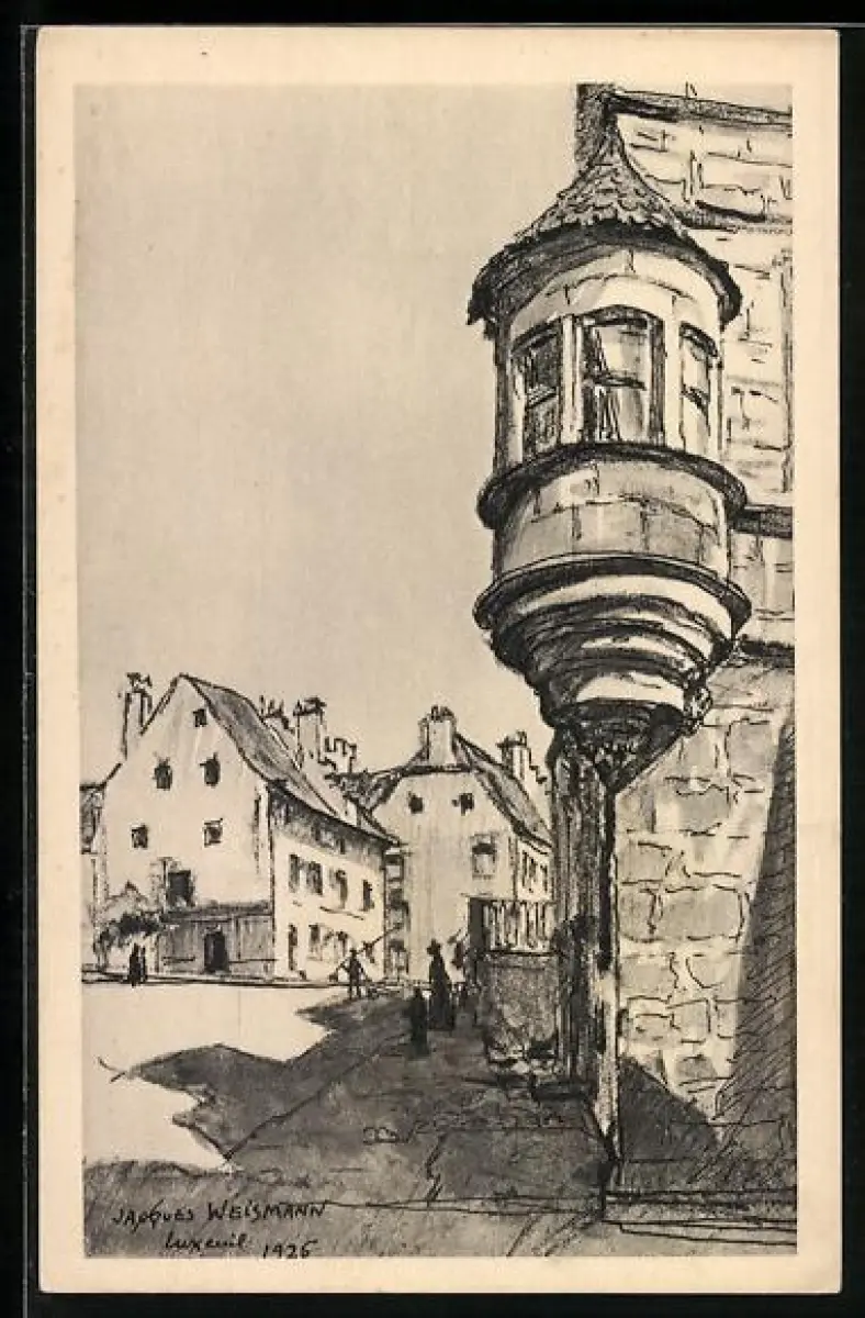 AK Luxeuil, Vue d`une rue avec oriel et maisons anciennes