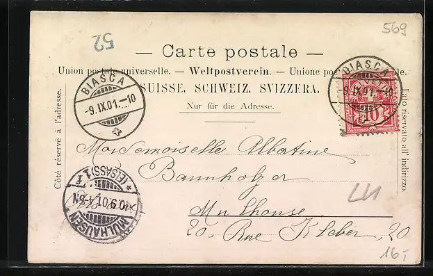 gelaufen 1901, Eckknick unten li., guter Zustand
