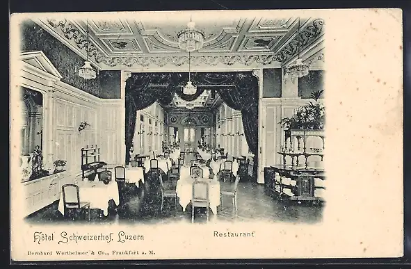AK Luzern, Hotel Schweizerhof, Restaurant, Innenansicht