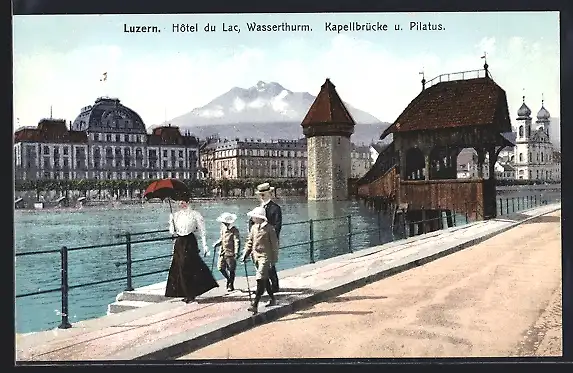 AK Luzern, Hotel du Lac, Wasserturm, Kapellbrücke