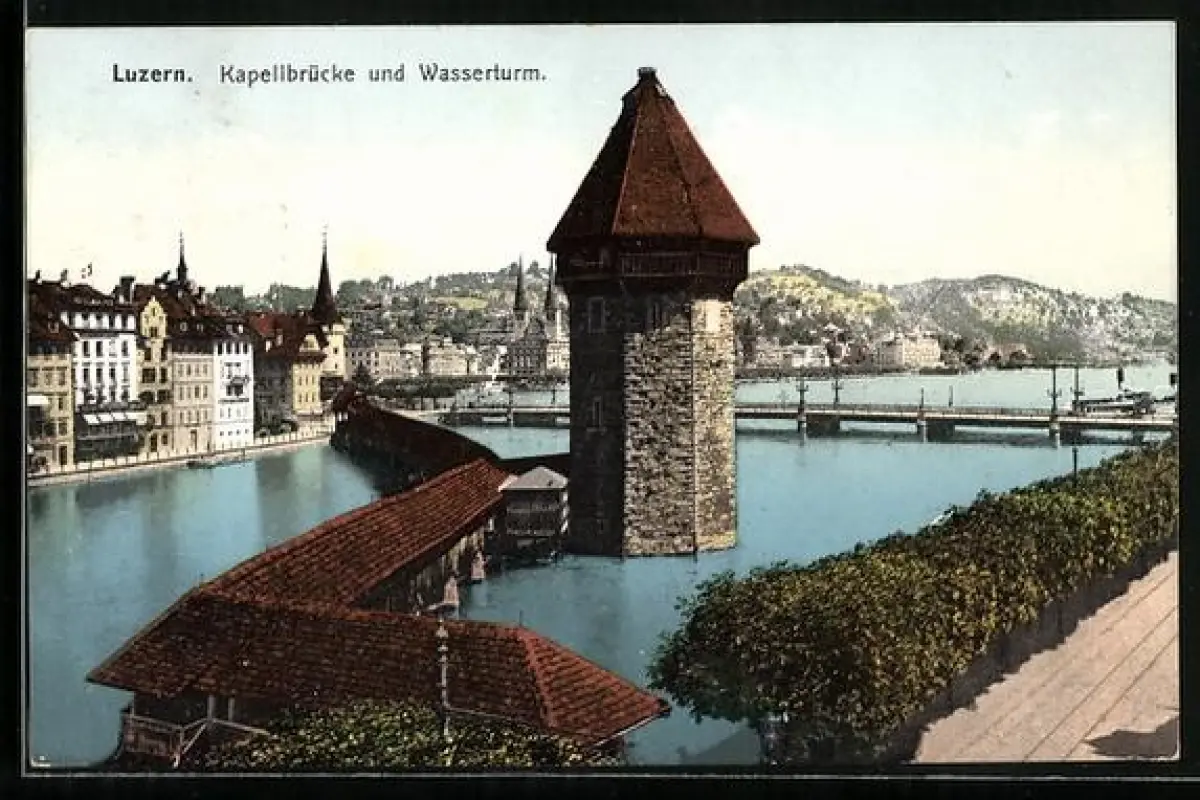 AK Luzern, Kapellbrücke und Wasserturm