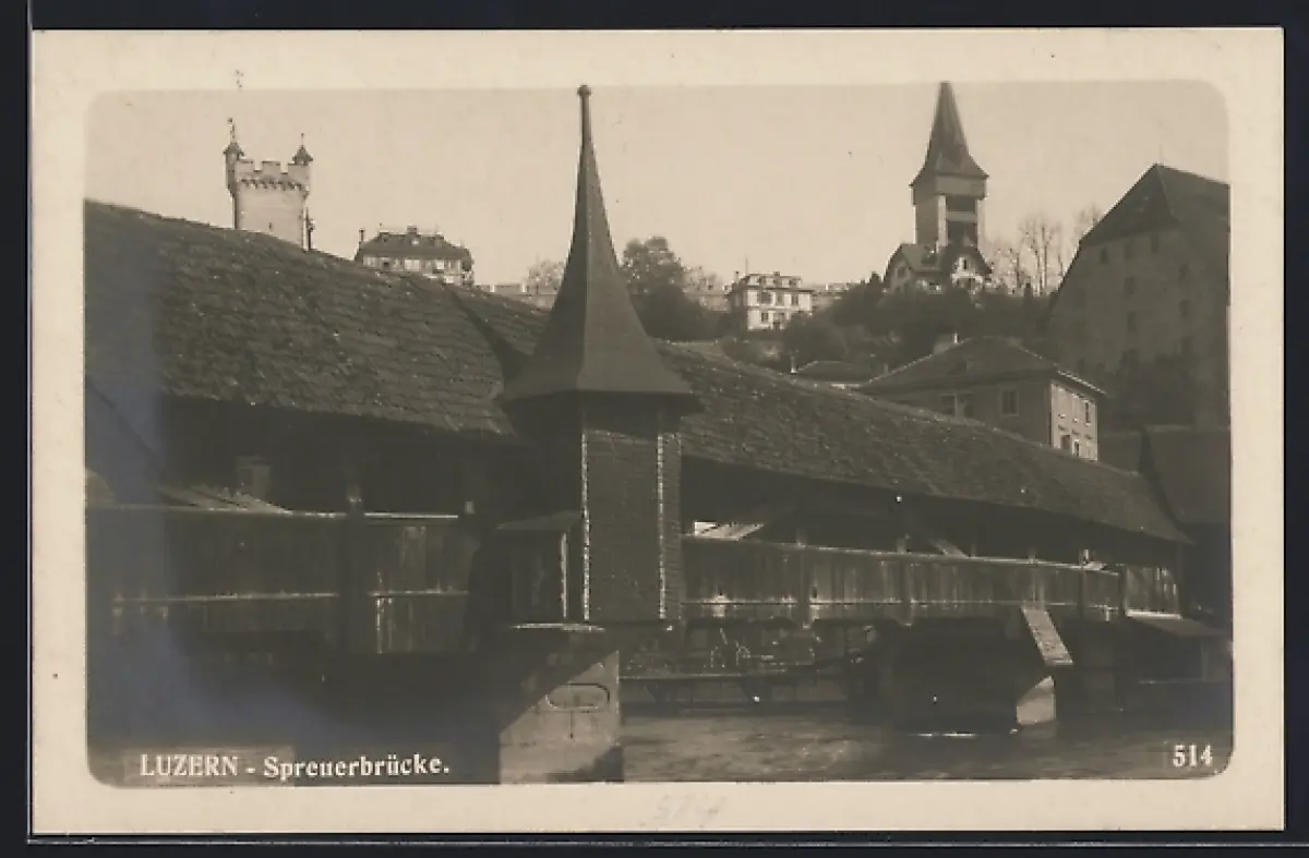 AK Luzern, Spreuerbrücke mit Turm-Panorama