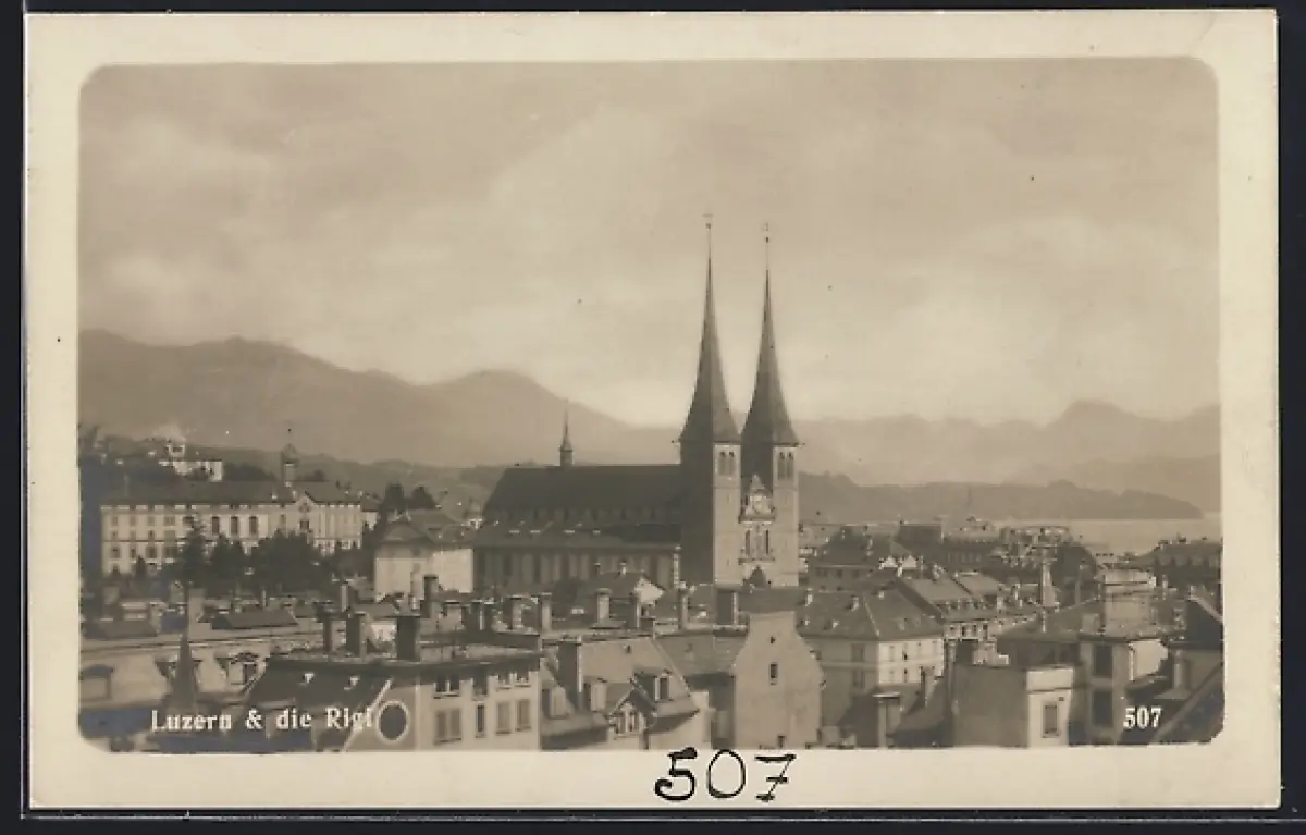 AK Luzern, Teilansicht mit Rigi aus der Vogelschau