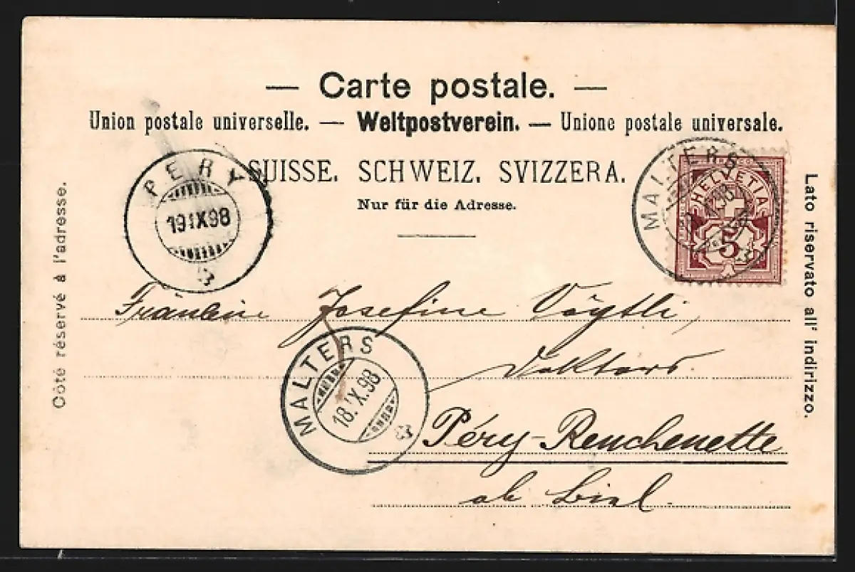 gelaufen 1898, Eckknicke re. oben, guter Zustand