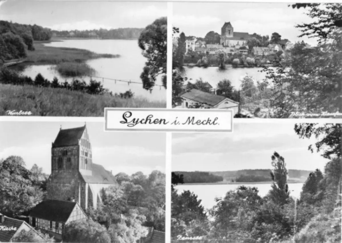 Ansichtskarte Lychen vier Abb. Erhaltung I-II postalisch gelaufen, gestempelt: Lychen, 6.6.62 Druckvermerk: 1961 Herstellungsland: DDR Verlag: PGH Rotopho, Bestensee bei Berlin