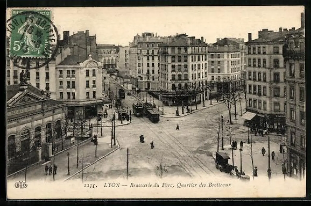AK Lyon, Brassserie du Parc, Quartier des Brotteaux, Strassenbahn