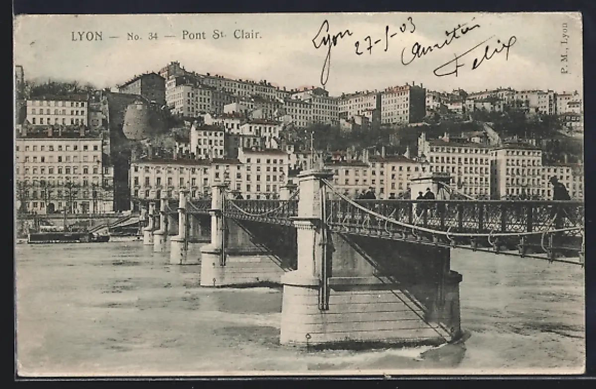 AK Lyon, Pont St. Clair avec vue sur les bâtiments en arrière-plan
