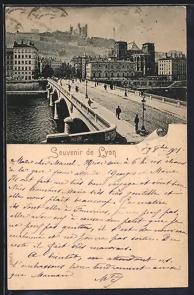 AK Lyon, Pont et vue sur la colline de Fourvière