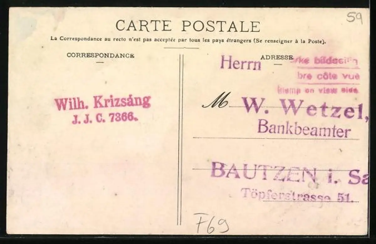 alte Ansichtskarte, ungelaufen, Stempelspur, guter Zustand