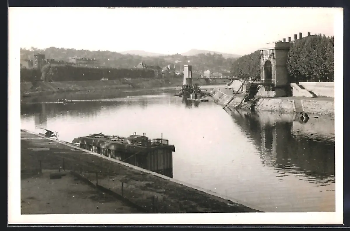 AK Lyon, Vue du Pont Mouton et de la rivière Rhône