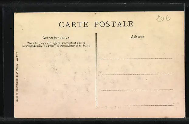 Personenbezogene Daten auf der Rückseite der Karte wurden durch blauen Textmarker unkenntlich gemacht. Die blauen Stellen sind auf die Vorderseite durchgeweicht und wirken sich negativ auf das Postkartenfoto aus