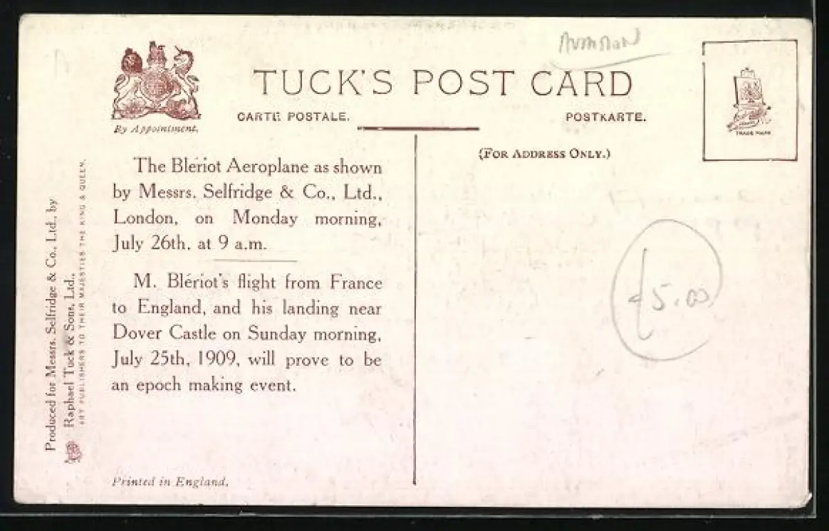 AK M. Bleriot's Aeroplane on which he crossed the Channel, Flugzeug