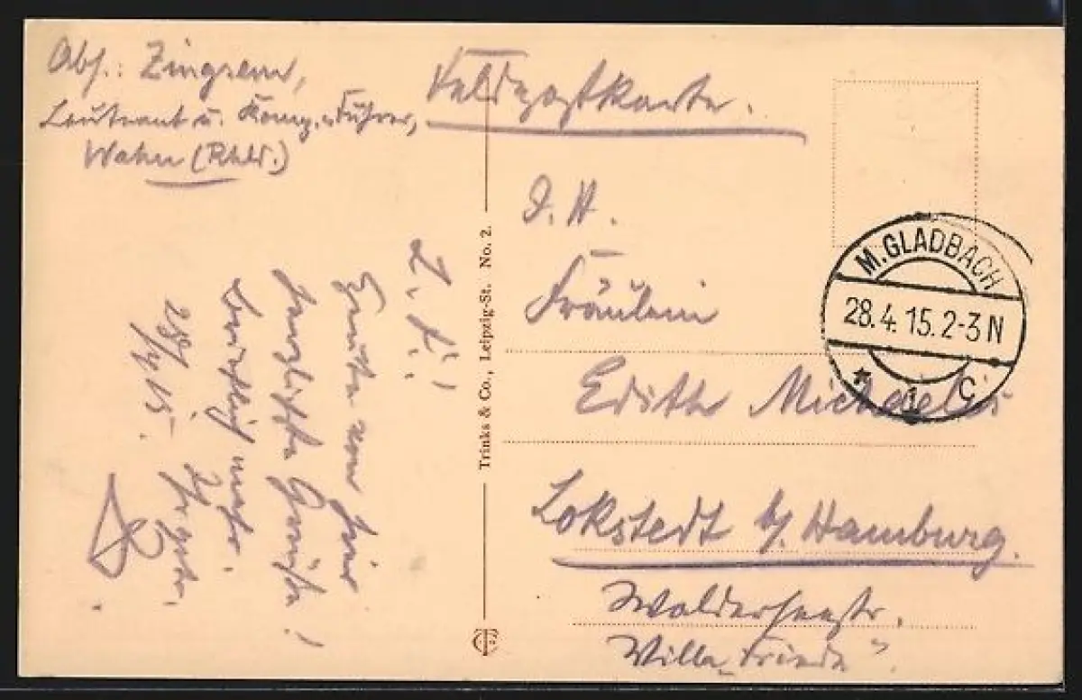 gelaufen 1915, Stempelspur, guter Zustand