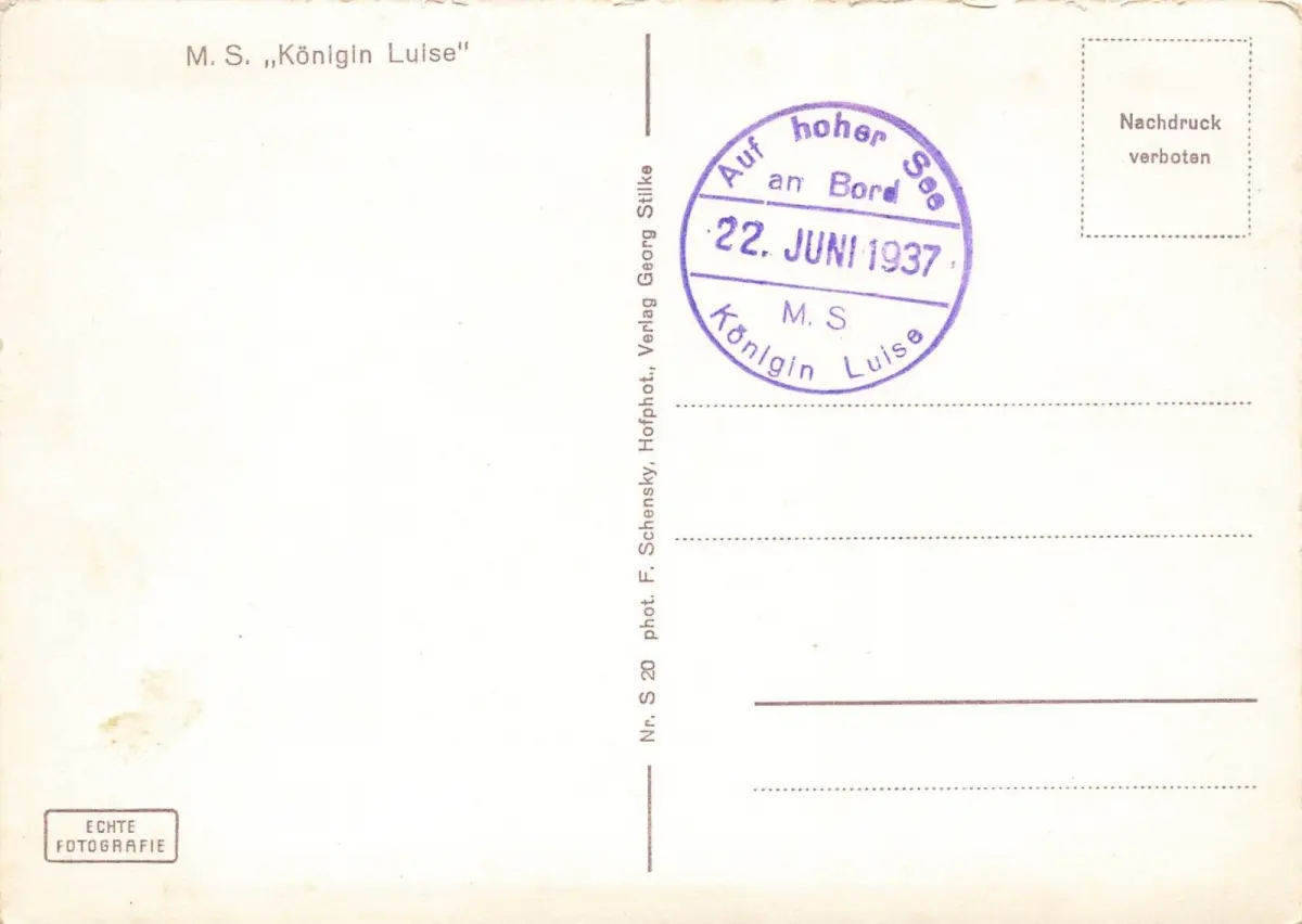 AK M.S. Königin Luise Schiff 1937 ungelaufen Postkarte