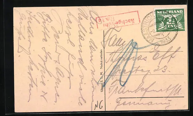gelaufen 1933, kleiner Einriss oberer Rand mittig, guter Zustand