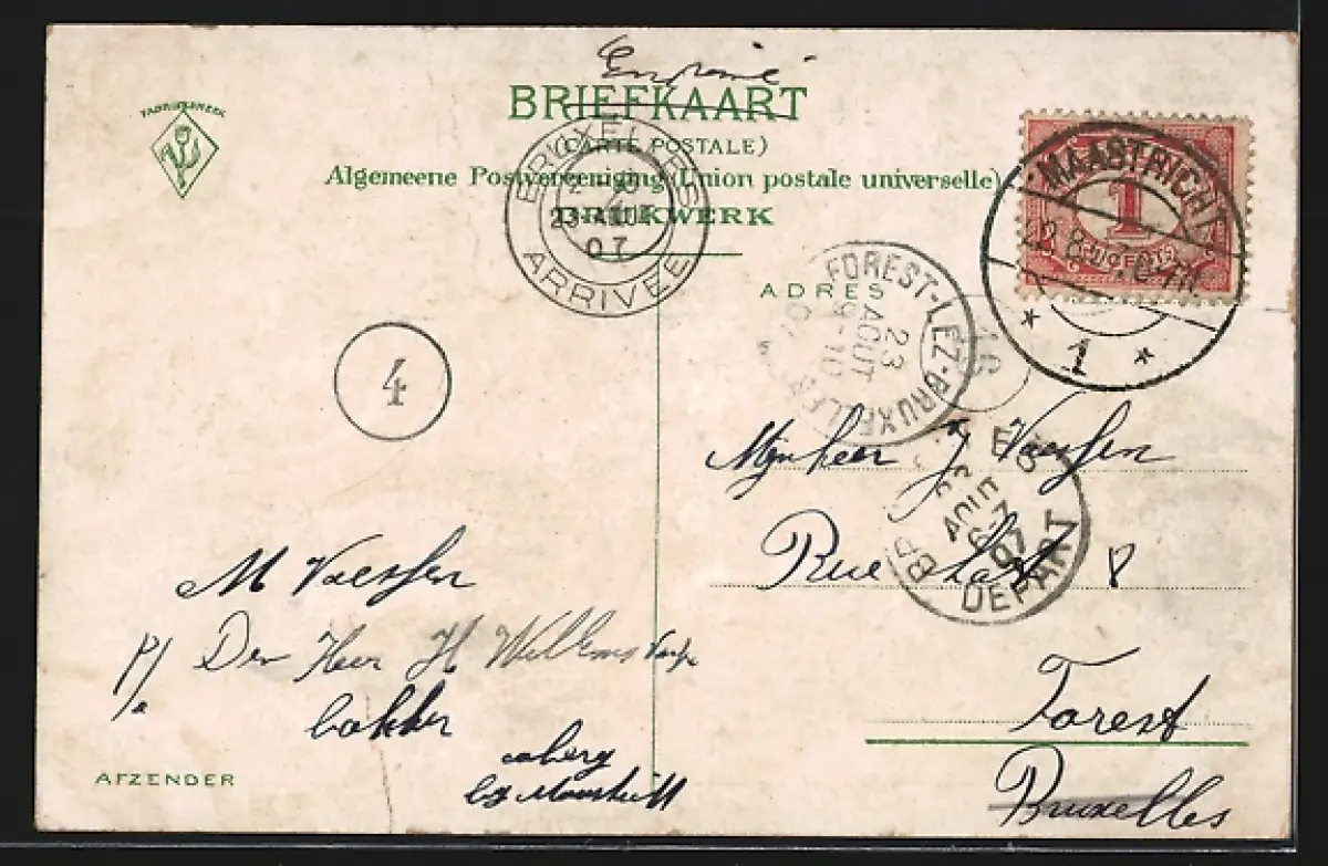 gelaufen 1907, Bugspur unten mittig, guter Zustand