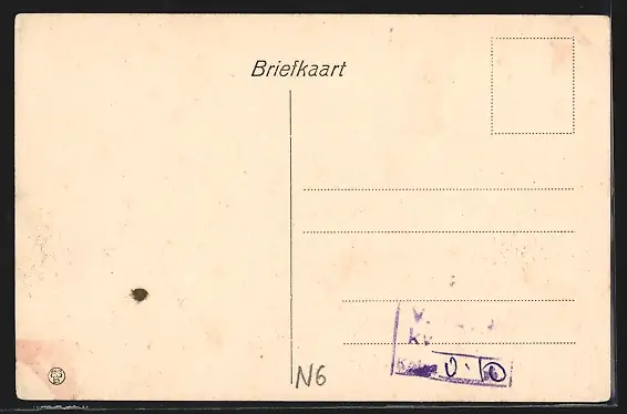 Personenbezogene Daten auf der Rückseite der Karte wurden durch blauen Textmarker unkenntlich gemacht. Die blauen Stellen sind auf die Vorderseite durchgeweicht und wirken sich negativ auf das Postkartenfoto aus