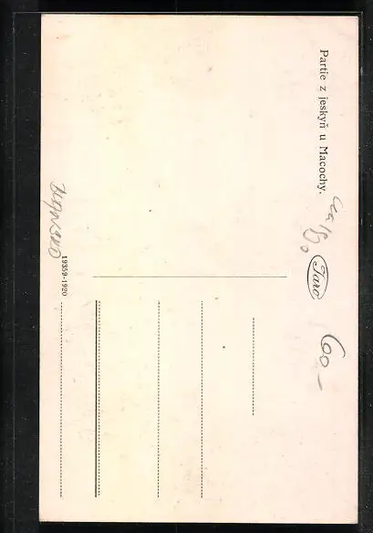 Personenbezogene Daten auf der Rückseite der Karte wurden durch blauen Textmarker unkenntlich gemacht. Die blauen Stellen sind auf die Vorderseite durchgeweicht und wirken sich negativ auf das Postkartenfoto aus