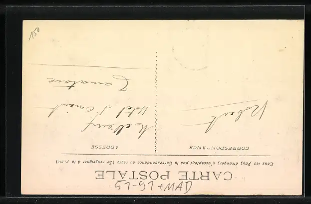 Personenbezogene Daten auf der Rückseite der Karte wurden durch blauen Textmarker unkenntlich gemacht. Die blauen Stellen sind auf die Vorderseite durchgeweicht und wirken sich negativ auf das Postkartenfoto aus