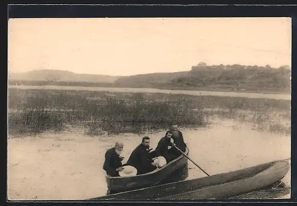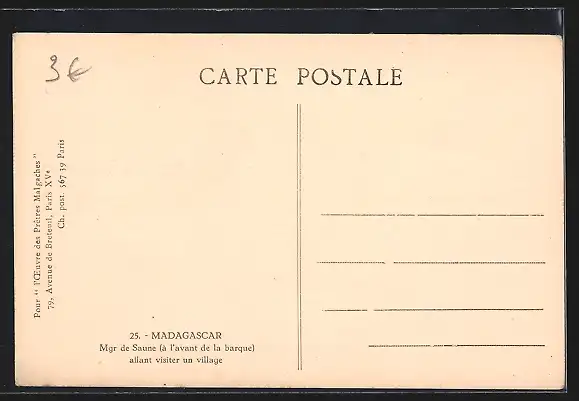 AK Madagascar, Mgr. de Saune (à l`avant de la barque) allant visiter un village