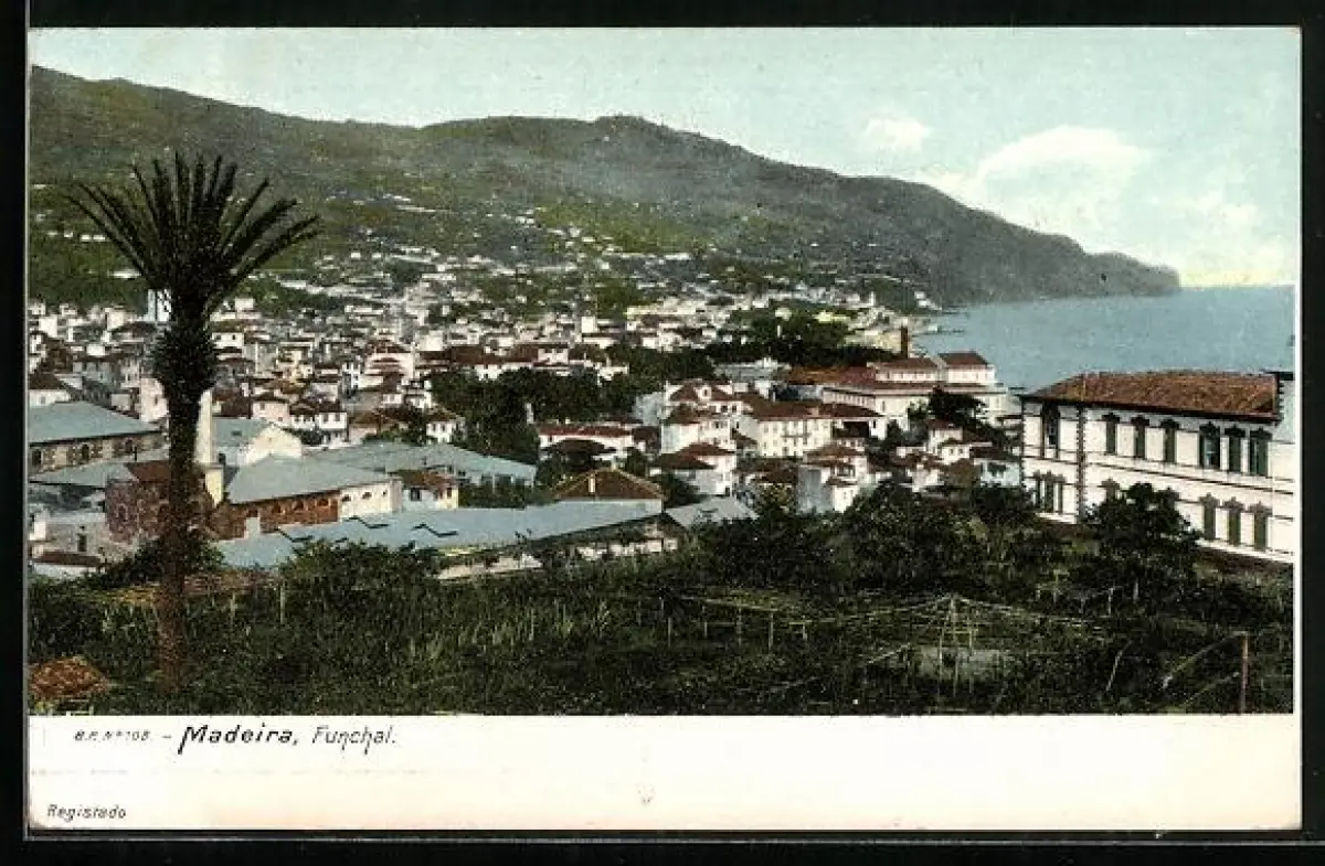 AK Madeira, Funchal, Totale vom Berg aus zur Küste