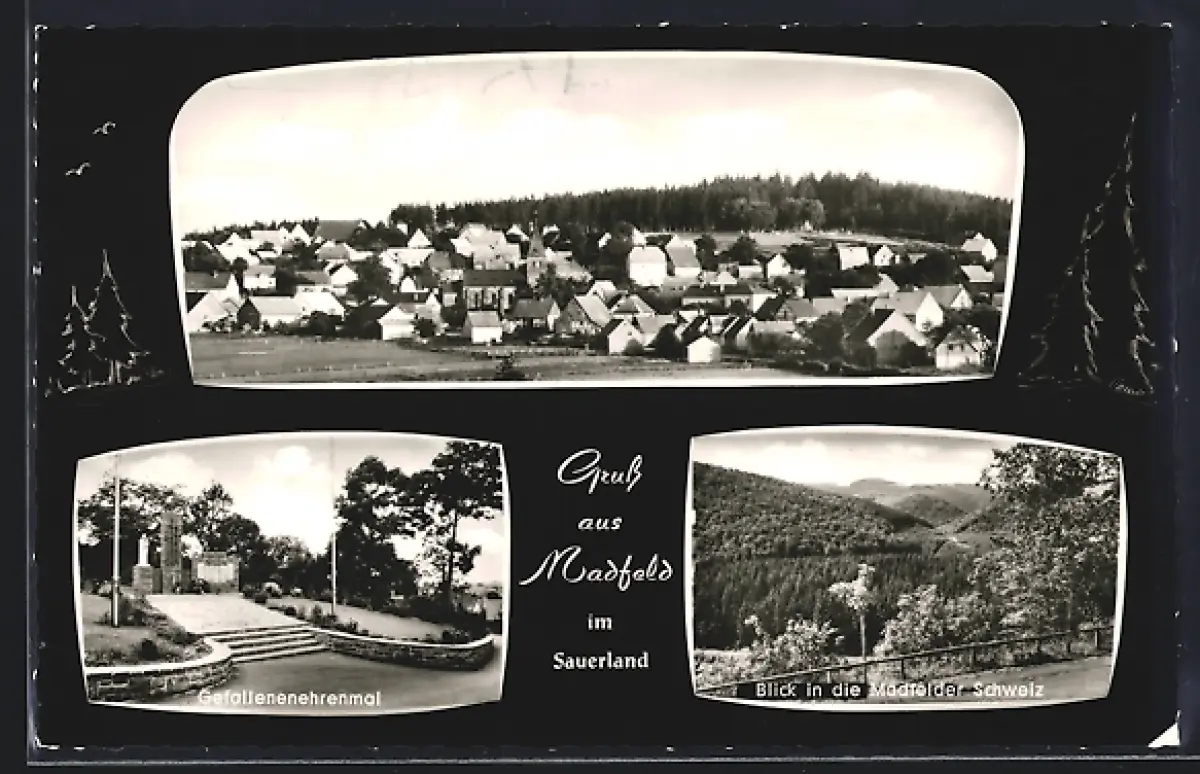 AK Madfeld im Sauerland, Gefallenenehrenmal, Blick in die Madfelder Schweiz