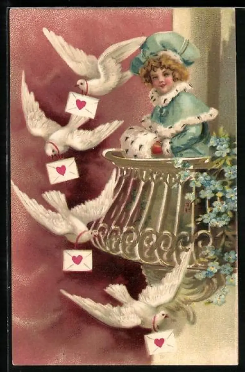 AK Mädchen auf Balkon mit weissen Tauben