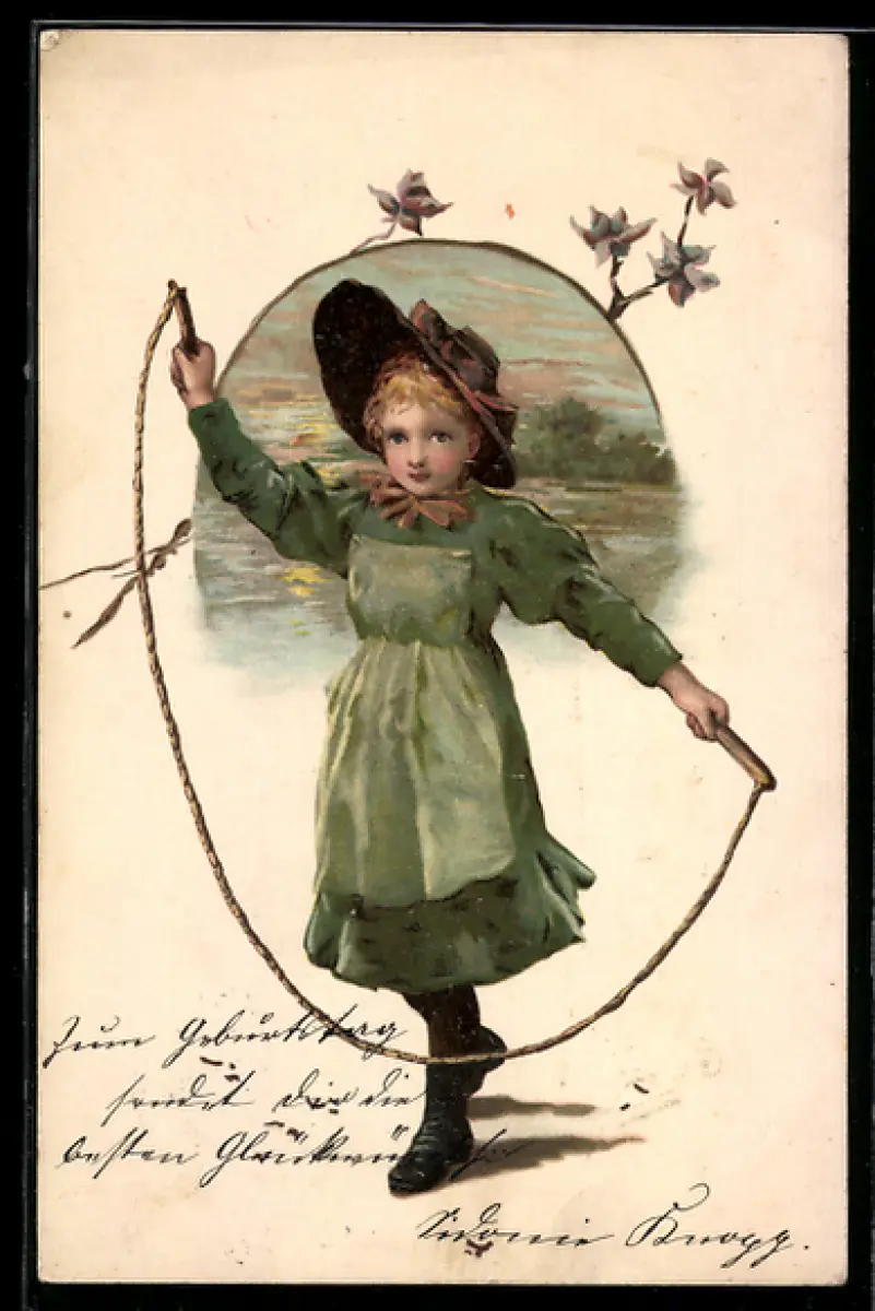 AK Mädchen im Kleid mit Springseil