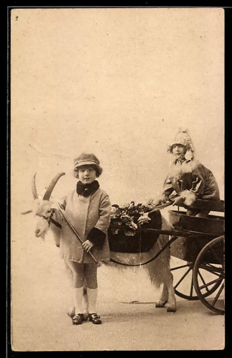 AK Mädchen lenkt Ziegengespann