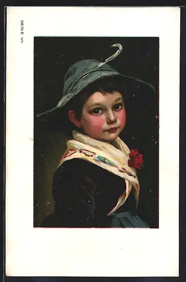 AK Mädchen mit Federhut und Halstuch, Milchpulver-Reklame von Nestlé
