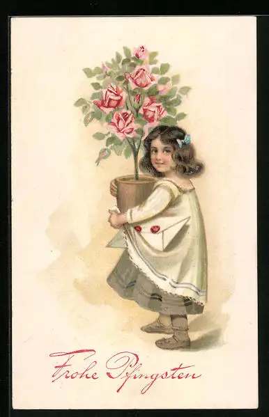 AK Mädchen mit Rosenstämmchen zu Pfingsten