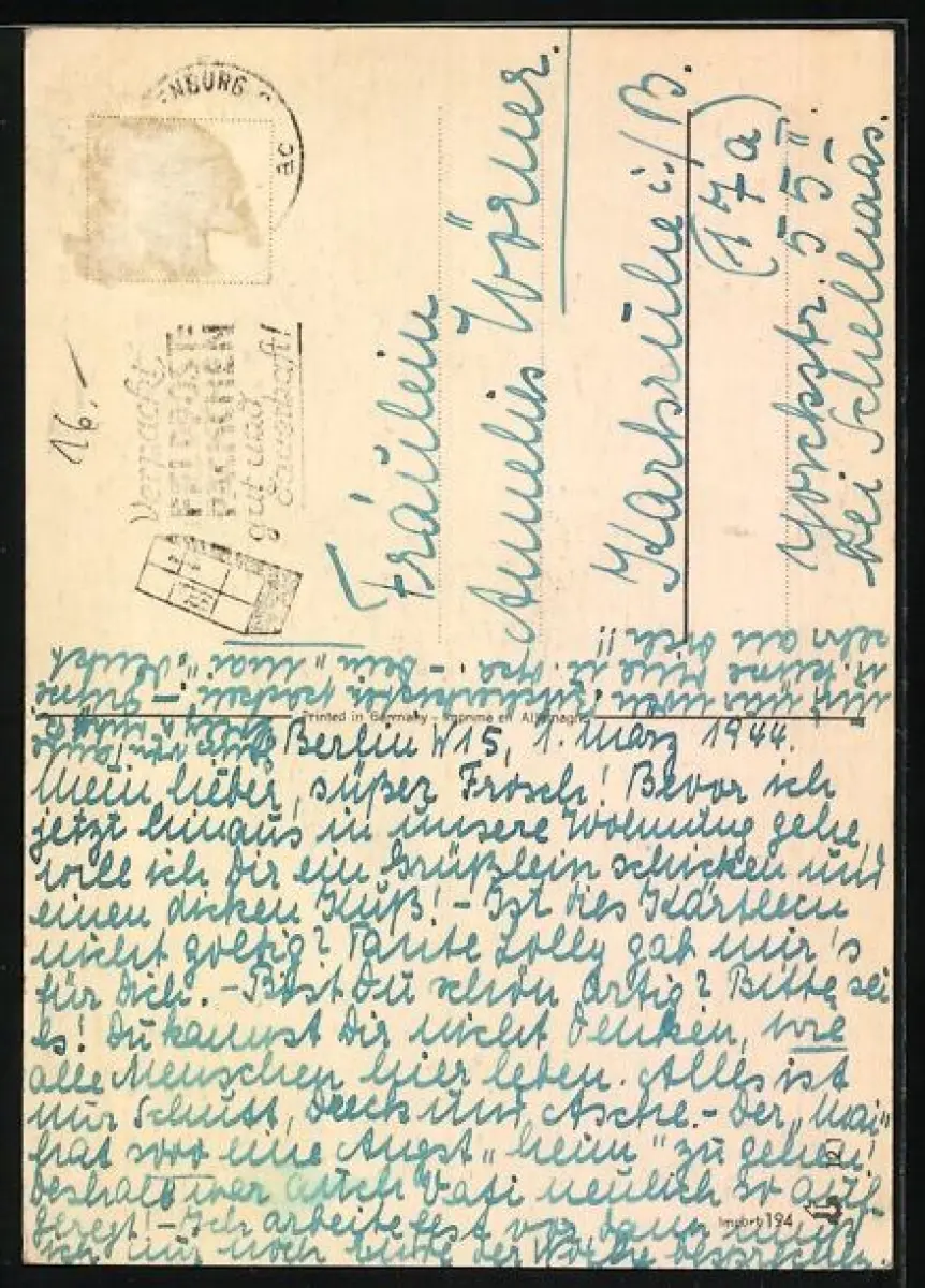 alte Ansichtskarte, gelaufen, Briefmarke entfernt, guter Zustand