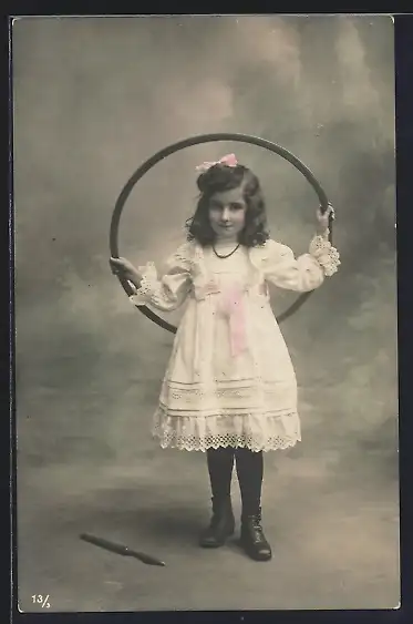 AK Mädchen mit einem Hula-Hoop-Reifen als Spielzeug