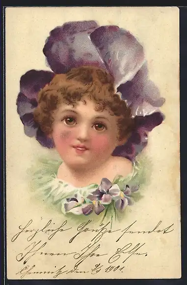 AK Mädchen mit einem Veilchen als Hut