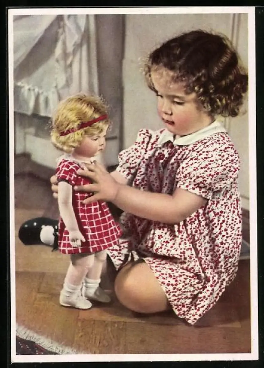 AK Mädchen spielt mit einer Käthe Kruse-Puppe