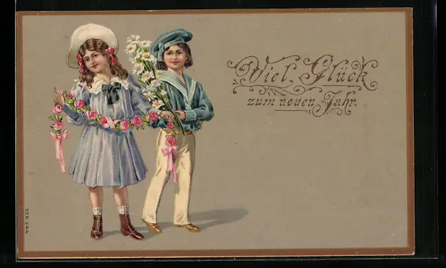 AK Mädchen und Junge im Matrosen-Anzug zu Neujahr