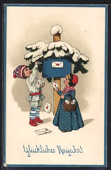 AK Mädchen und Junge in Tracht werfen Briefe ein