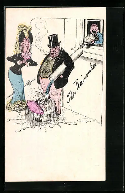 AK Mädchen wird durch ein Rohr begossen, Scherz