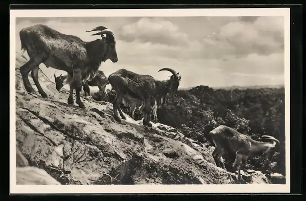 AK Mähnenschafe auf Felsen im Hochgebirge
