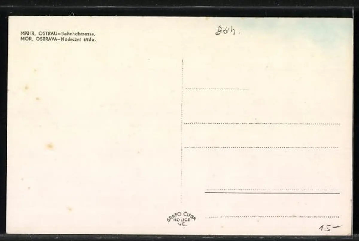 AK Mähr.- Ostrau, Bahnhostrasse mit Geschäften, Brunnen