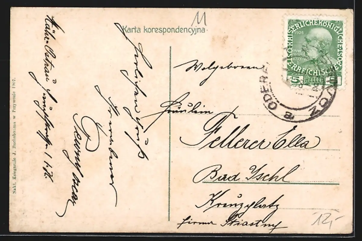 gelaufen 1908, Eckknicke li. unten, guter Zustand