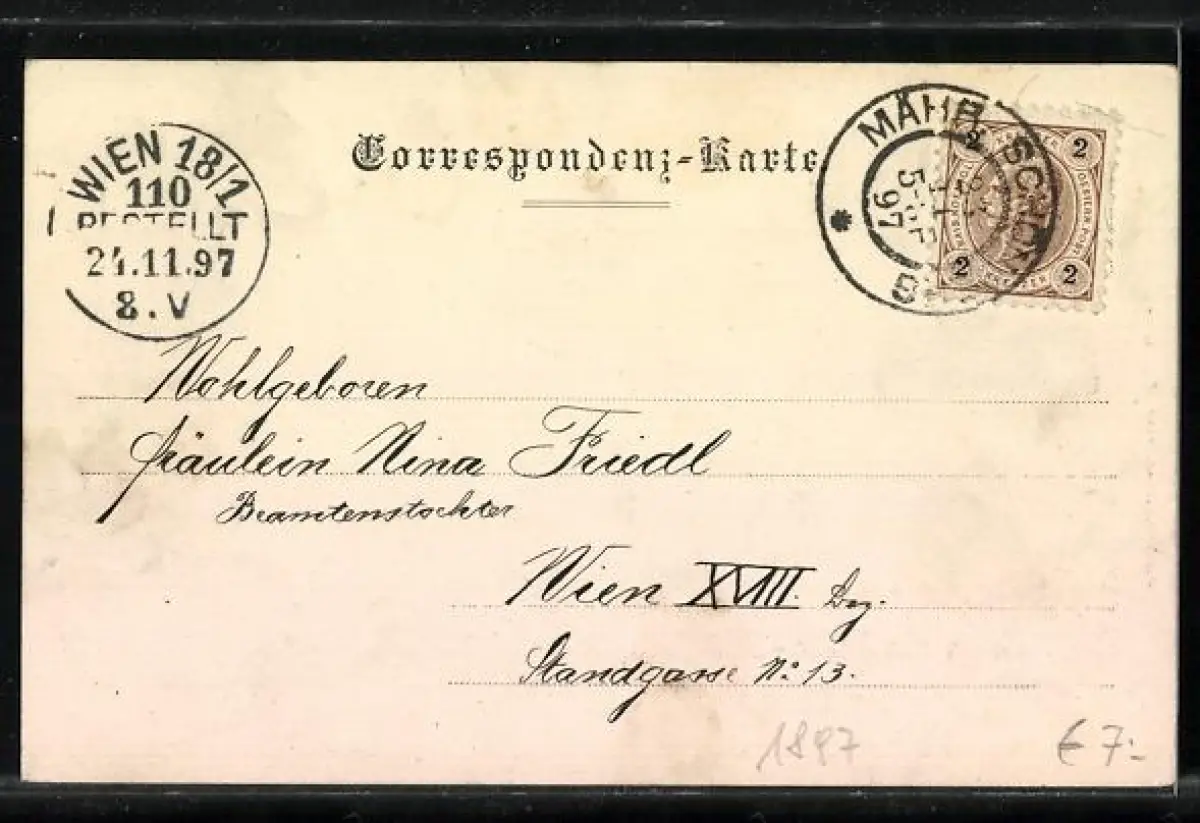 alte Ansichtskarte, gelaufen 1897, guter Zustand