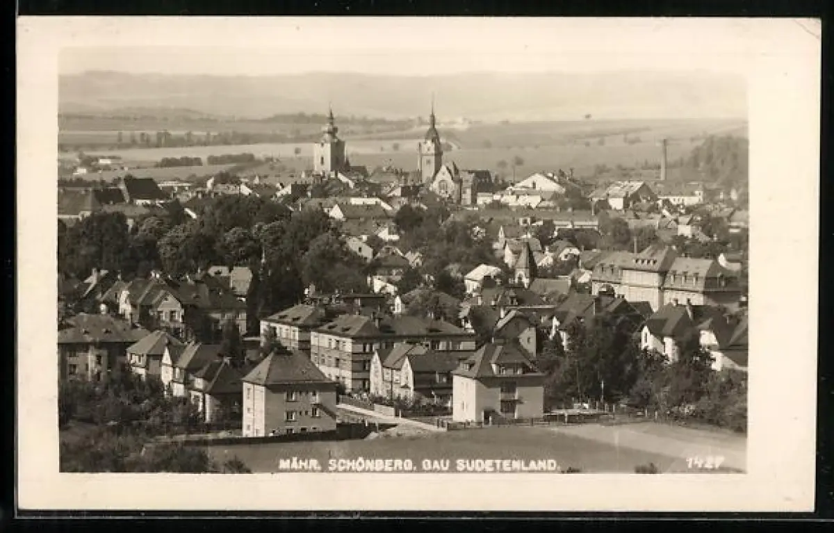 AK Mähr. Schönberg /Sudetenland, Ortsansicht mit Kirche