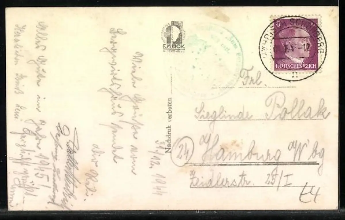 alte Ansichtskarte, gelaufen 1945, Eckknick re. oben, guter Zustand