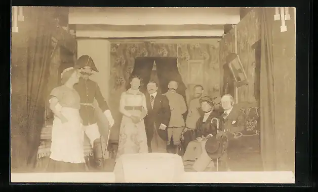AK Männer in Uniformen mit Frauen, Travestie