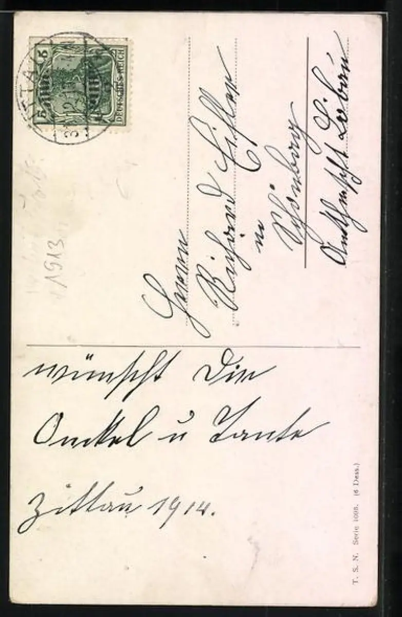 alte Ansichtskarte, gelaufen 1913, Eckknicke re., guter Zustand