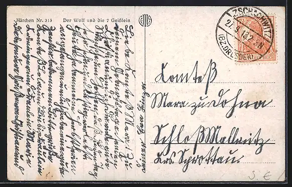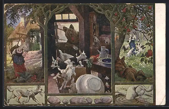 AK Märchen: Der Wolf und sie 7 Geisslein, verschiedene Szenen