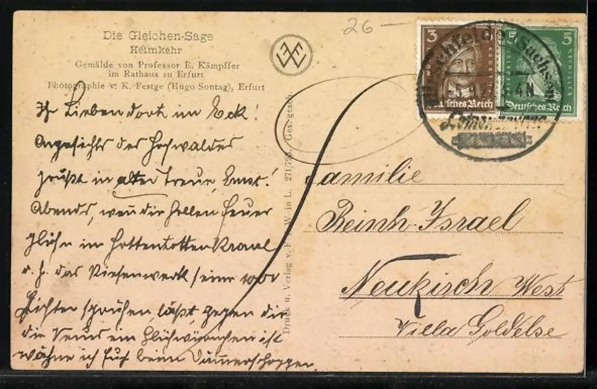 alte Ansichtskarte, gelaufen 1927, guter Zustand