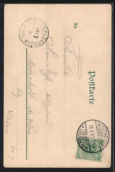 alte Ansichtskarte, gelaufen 1900, guter Zustand